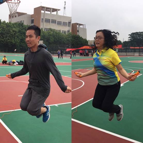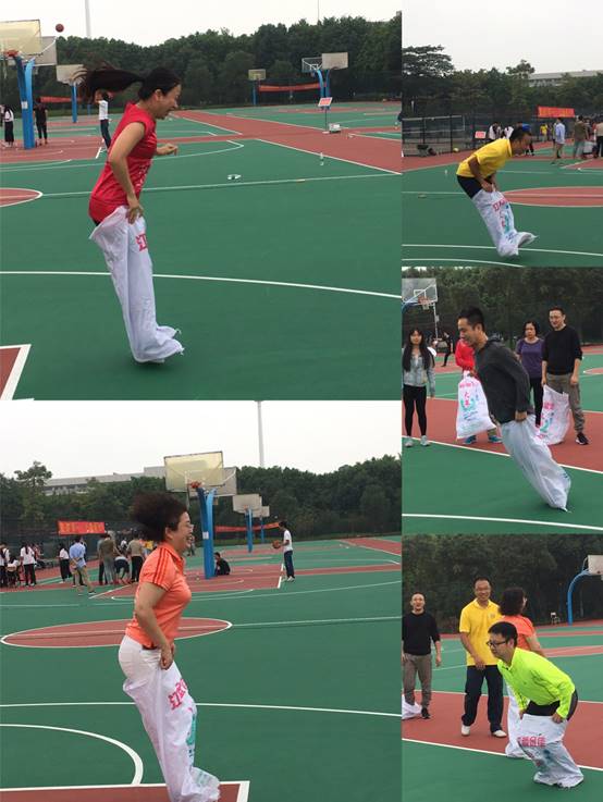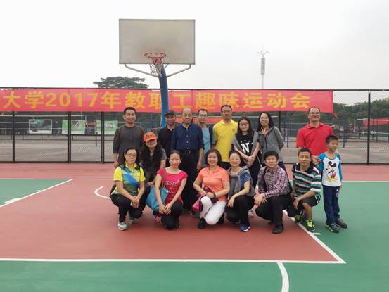 本网讯 11月17日上午9点,2017年广东外语外贸大学运动会在南校区体育场拉开帷幕,其中教职工趣味运动会在南校区篮球场举行。现场气氛热火朝天,我院教职工们都摩拳擦掌,跃跃欲试地投身于各项运动中。