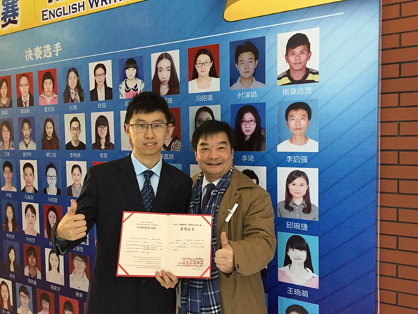 今年的决赛选取记叙文和议论文两类文体。记叙文以“A Letter on Father’s Day”为题,要求选手就一封写给父亲的信件开篇进行续写,选手既可基于自己的生活感悟阐述他们对于父子或父女之情的理解,也可发挥创造力来编写感人的故事;议论文则要求选手对“春晚”这个热门话题阐述自己的观点,旨在考查选手对于社会热点的理解和批判能力,张涵 “借题发挥”,凭借扎实的语言功底、广阔的国际视野、创新的思维、严谨的思辨能力和深厚的文化素养,得到评委的一致认可,最终从所有选手中脱颖而出,勇获一等奖。