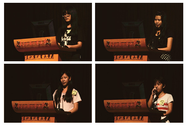 本次比赛的个人独白环节分两次进行,有英音和美音两则独白素材可供选择,前者是严肃平缓的大会发言,后者则为幽默风趣的美式演讲。由于采取随机抽号的形式,每位同学对此环节既紧张又期待。被抽中的幸运儿在同学们的掌声和呐喊声中登台迎战,现场气氛十分活跃。到台上独白的学生,有的从容镇静,准确地模仿了原演讲者的语音语调,非常自信地完成独白;有的则在观众面前略显紧张,但进行过提前准备的她们都顺利地克服了这些困难,成功地完成了独白。其中,区钰晴同学因发音标准清晰、朗诵流利和感情投入,从众多选手中脱颖而出,勇夺个人独白一等奖。
