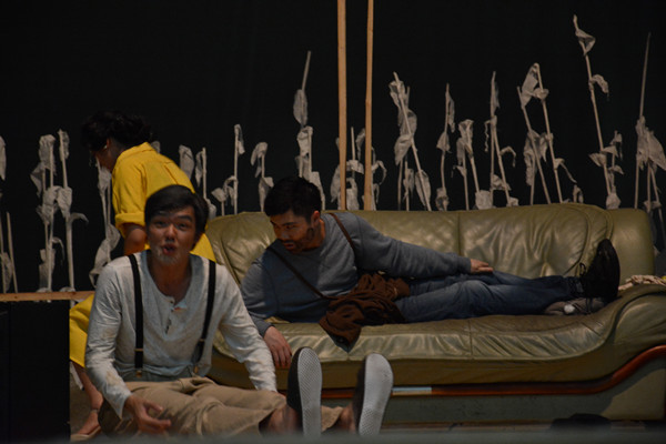演员们在舞台上倾情表演,用表情与肢体动作给观众以直接的视觉冲击,而配音演员们则用情感充沛的声音给观众带来一场听觉盛宴。第四剧组的配音演员表示,两个月来的多次排练使他们与舞台演员形成极高的默契度。舞台演员开口,在后台时刻准备着的他们随即可将台词说出,情感拿捏准确到位。另外,只有四只固定话筒增加了演员的配音难度,但他们通过快速的移动解决了这这一问题。“其实经过了这么多次的排练,我们连其他人的台词都会背了,对整部剧的演绎也已水到渠成。”