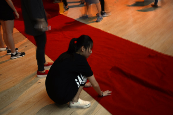 精彩的演出往往离不开后台工作人员的默默付出。道具定位,舞台布置,灯光和音效调试,演员化妆等都需要工作人员们在正式表演前提前做好准备。也正是幕后工作人员不畏艰辛的努力,使第三次彩排及正式演出得以有条不紊地进行。
