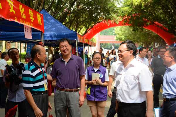 本网讯 6月20日上午,第十六届“广外开放日”在北校区主校道上拉开帷幕。校党委书记隋广军、副校长刘建达和陈林汉、校办主任植秀聪、宣传部部长胡文涛、教务处处长焦方太等领导莅临vwin德赢AC米兰官网摊位,与vwin德赢AC米兰官网招生摊位的师生亲切交流并表示关心和慰问。