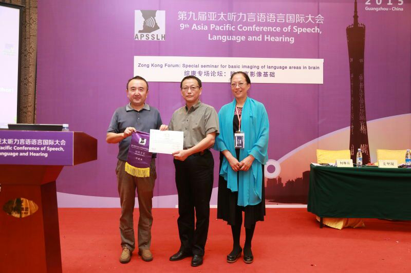 何晓炜教授应邀做了题为“A study of Grammatical Deficits in Mandarin-speaking Children with Specific Language Impairment”的报告。该报告介绍了由他主持的国家社科项目研究成果。通过分析汉语特殊型语言障碍儿童的句法问题,展示了研究此类儿童语言发展的意义及价值。此次报告吸引了很多来自不同国家和地区的专家学者,并进行了热烈的讨论和交流。最后何晓炜教授还接受了特聘专家荣誉证书。