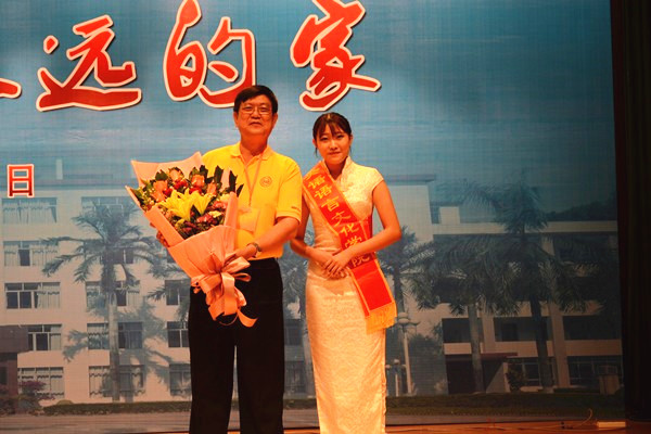 在校学生向校友代表献花