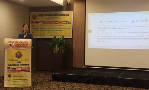 这次大会主题围绕教育及心理学领域的理论发展及实践进行,来自中国、泰国、缅甸、菲律宾、巴基斯坦、印尼、越南等亚洲国家的前线教师纷纷各抒己见,讨论的重点在于如何通过新技术促进学生自主学习,英语作为第二语言及英语作为外语如何进行相应的教学。会议中本族语老师和非本族语老师交流经验,互相学习。我院梁静璧老师的发言题目是“多模态同伴互评对中国大学生英语学习者写作的效果”(Effects of Multimodal Peer Review on Chinese EFL College Writers),受到同行们的关注并进行了热烈的讨论。