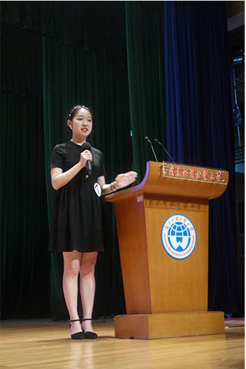 大赛由“ArtificialIntelligence”(人工智能)的主题演讲拉开帷幕。其中两位选手同时选择了翻译软件角度作为出发点展开论述。1507班林菁提出,翻译软件并不能理解人类的内心活动,从而会失去原文本深刻的隐含意蕴;而1509班的柳生幸一同样认为其翻译出的文字索然无味,仅能止步于用词准确,远不如人类所能为之。1507班李锦滢则为人类与人工智能的和谐共处提出“三个保持”:保持好奇、保持开放、保持适应。1512班的郭文雯独辟蹊径,以人工智能作为生命的延续作为切入点,精彩的演讲获得评委的一致好评。