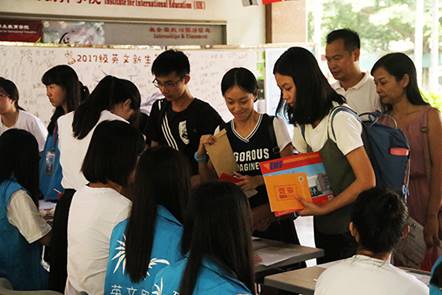 校园里面,随处可见身穿绿色小马甲的英文志愿者,志愿者们以温暖的笑容、饱满的热情主动为新生回答疑问、搬行李,热情周到细致的服务获得了新生和家长的好评。
