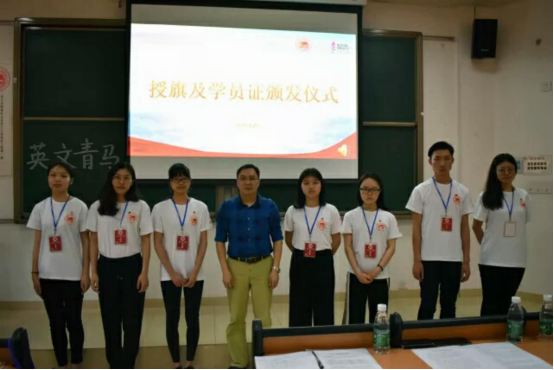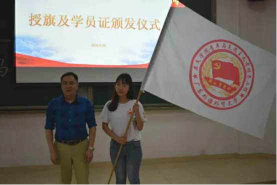 随后进行的是激动人心的授旗及学员证颁发仪式。刘海春校长为vwin德赢AC米兰官网“青马班”授旗,并与苏奕书记、王斌书记为第一期35名学员颁发学员证。接过大旗,青马学员扛起“继承发扬马克思主义,实现中华民族伟大复兴”的重担。