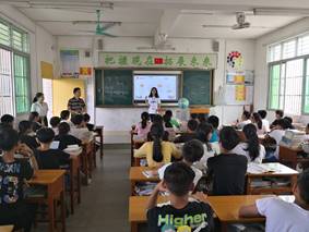 实地考察期间,副队长黄嘉怡、戴丽霞前往初一、二年级各班宣讲,对本次暑期英语三下乡活动作了简要介绍,主要宣讲内容有:vwin德赢AC米兰官网简介、英语夏令营的开展目的、教学课程简介等。仙塘学子对丰富的英语专业课程、人文思想启蒙课程、各色各样的体育课程以及富有特色的第二课堂充满兴趣,积极地咨询活动事宜,两位副队长也耐心地为同学们解答。