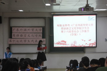 13位新一届学生会委员候选人先后上台演讲。1604班区欣怡以“有所为、有所爱、有所期待”为主题,讲述自己的工作经历,表明自己对英文团学工作的坚守和热爱,表达原为学院的发展继续奉献力量的决心。1701班张谷雨回忆从中学以来参与学生工作的经历,阐明其对学生会工作的看法及建议,并表达了其对英文团学美好未来的期待。大会以无记名投票方式进行了差额选举,崔晓雯等11名同学当选为新一届学生会委员。