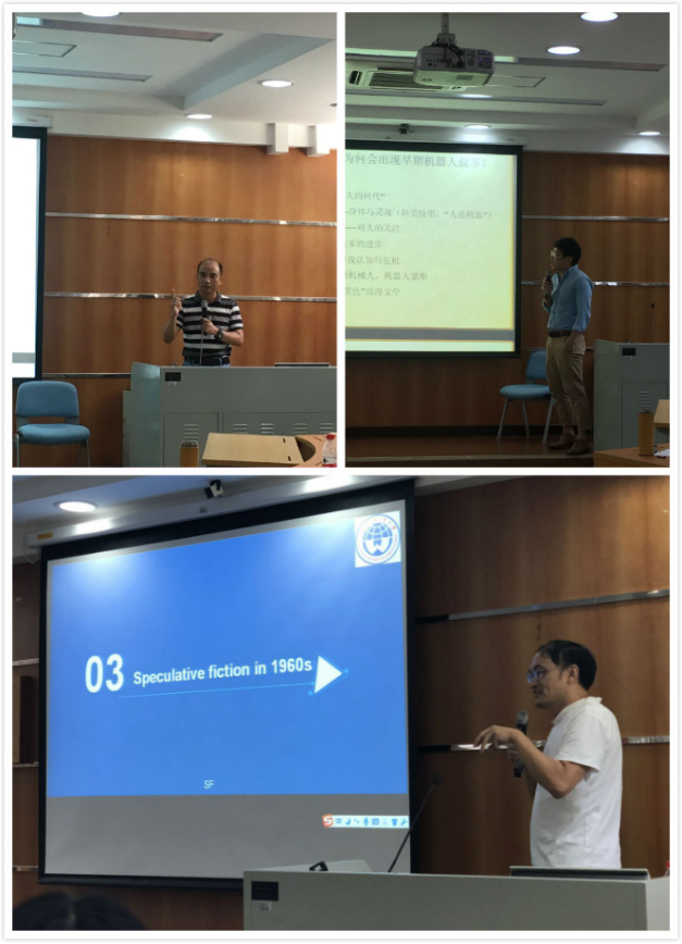 然后,广外vwin德赢AC米兰官网的唐伟胜教授针对美国20世纪60年代盛行的奇幻小说(speculative fiction)进行了阐释,并对奇幻小说与科幻小说的定义分别进行了阐释。彭保良教授则分析了电影中的主体三分性,即叙述主体、构建主体与阐释主体。云山青年学者程林博士对科幻小说仿真机器人的“恐惑”效应进行了学术分享。
