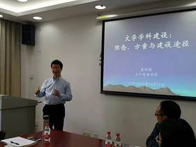 关于学科建设方案,查教授认为随着学科方向的调整和新形势对外语学科的要求,需要增强大文科意识和跨学科意识,建立适应新要求的学科发展规划,扩大和深化文学学科内涵,制定本硕博一体化的专业课程体系,大力提升教师的专业素质和跨学科研究能力,组建相关的科研团队,与外语学科系统内的比较文学与跨文化研究、翻译学和国别与区域研究三个学科方向形成学术架构上相互支撑、师资发展上互促、学术资源上互补、教学和科研上互动的学科群。最后,查教授以上外英语学院学科建设的实际经验展示他对教师发展和课程设置的做法,主要侧重“跨文化”的特点以及反对“因人设课”的弊端。