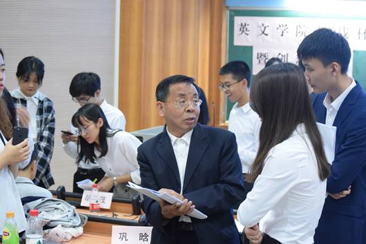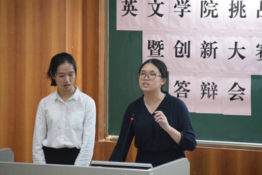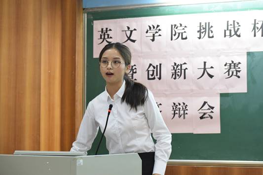 最先登场的是四支参加创新大赛的队伍,他们从生活中遇到的小问题、各自的专业以及时事热点出发,进行了调查和思考,为在场的观众展示了各具特色、精彩纷呈的项目。其中,郑雨晴等同学带来的作品“诗歌网站——Paradise Gained”,在创新过程中较大程度发挥了专业知识的长处,设计了具有单词学习、诗歌下载、复习、讨论等多种功能的诗歌网站,得到了评委的一致好评,同时,评委也指出了该网站界面设置所存在的一些问题,希望他们能加以完善。张丽瑶、曾璐祺、张冉等同学带来的其它三个项目也都展现出了英文人的创新精神和创业热情。