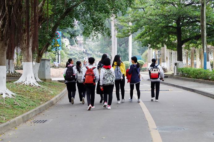 12:30,Polaris志愿服务队员带领学生参观广外校园。途中,尽管天气闷热不已,但是学生们表现得兴致勃勃。队员们为学生热情介绍校园的美丽风光,同时无微不至地给予关怀。