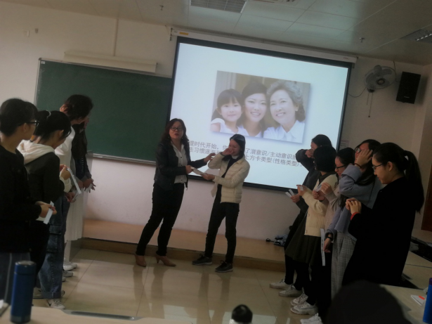 接着郭教授邀请了同学们参与情景剧。通过对比两组同学消极和积极的话语态度,让大家领悟同理心的重要性。同理心能帮助同学们更好地与身边的人相处,在他人生气、哀伤或恐惧的时候不激化原来的矛盾。郭教授还组织了两两一组的定向对话游戏,学习和应用“我”句式和“你”句式等自我表达的技巧。