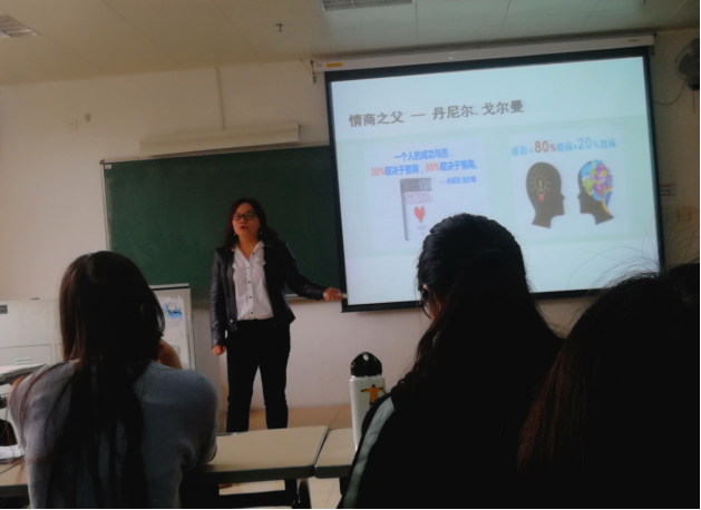 郭教授首先发问:什么是高情商?同学们给出了不同的答案:好人缘、善于与人相处,对自己和他人有充分的了解。然而郭教授指出,一个人的成就20%取决于智商,而80%取决于情商。情商是觉察、控制自己情绪的能力、控制和激励自己行为的能力、觉知他人情绪的能力、并能和别人友好的相处的能力。