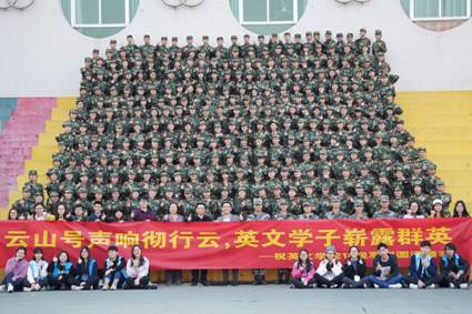学院领导老师等与军训新生合影