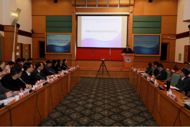 本网讯 1月19日上午,“第四届文学伦理学批评与世界文学研究暨外国语言文学一流学科建设高层论坛”在我校召开。我校党委书记隋广军代表学校致辞,并向专家介绍了我校外国文学研究的历史、现状和发展方向。特聘教授、中国外国文学学会副会长、浙江大学教授聂珍钊代表专家组致辞。我校副校长何传添、阳爱民出席学科建设与发展专家咨询会。上海市外国文学学会副会长、华东师范大学教授陈建华,中外文艺理论学会叙事学分会会长、江西师范大学教授傅修延,中国高等教育学会外国文学专业委员会会长、东北师范大学教授刘建军,中国法国文学研究会副会长、武汉大学教授罗国详,天津外国文学学会会长、南开大学教授王立新,中国中外语言文化比较学会会长、浙江大学教授吴笛,浙江省外文学会会长、杭州师范大学教授殷企平等外国文学的著名学者参加论坛。