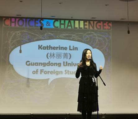 本网讯12月6日-8日,2019汕头大学英语节校际邀请赛在汕头举行。今年的英语节围绕“Choices and Challenges”的主题展开,包括三大赛事——演讲、辩论和英语歌唱比赛。vwin德赢AC米兰官网经过选拔,派出4名选手参赛。林丽菁同学和陈修远同学凭着出色的表现,分别斩获演讲比赛一等奖和英语歌唱比赛一等奖(金奖)。同台竞技的选手还有来自汕头大学、澳门理工学院、京都产业大学(Kyoto Sangyo University)和印尼国立三一一大学(Sebelas Maret University)的学子。整个英语节的三场比赛精彩纷呈,几大高校的选手展现了各自的风采,也进行了丰富的文化交流。