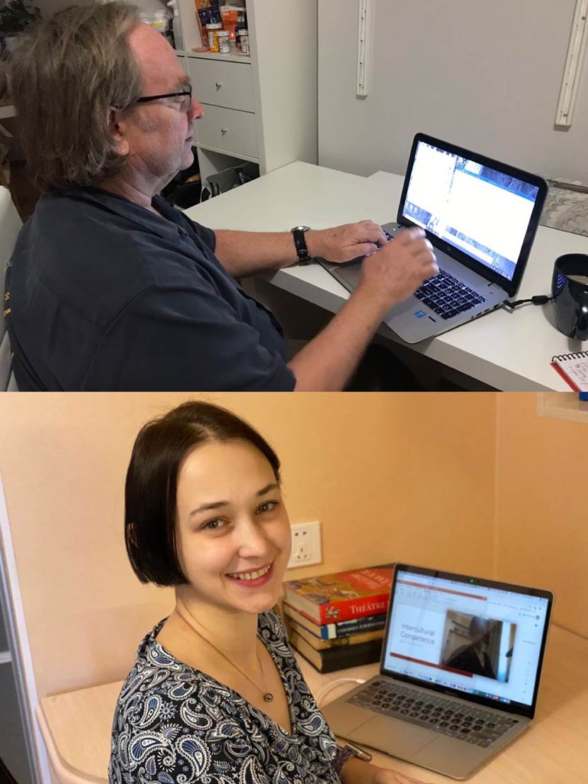 外教Robert(上)在美国纽约、Kate(下)在乌克兰哈尔科夫,克服时差等困难进行线上授课