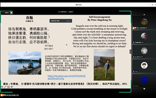 英语教学部此次邀请杜寅寅副教授举办了“The Road Not Taken(未选择的路)”主题分享交流活动。活动于7月22日上午10:00在腾讯会议平台举办,面向学院大一大二全体学生。活动旨在为学生面对人生选择提供思想建议与指导。杜老师引用美国经典诗歌《The Road Not Taken》的题目作为此次活动主题,通过分析主题诗歌的含义以及列举生活中的案例,揭示了人生选择的必然性,并强调了学生面对选择时个人态度(Positive Thinking)的重要性。杜老师还邀请了即将在剑桥大学攻读博士学位的2014级毕业生杨冠宇同学、现德国哥廷根大学在读博士2014级毕业生潘毅诗同学和准备在北京大学攻读硕士学位的2016级毕业生林汉钊同学,通过视频寄语的形式,分别阐明了个人态度对人生选择的重大作用,并分享了自己在广外学习的亲身经历和继续求学的故事。