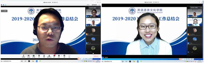 张欣院长总结讲话指出,在全院上下的共同努力下,我院教学、科研等各项工作都有条不紊地进行。本学期许多老师变身“主播”,从最初准备网络授课时的“手忙脚乱”,到如今在各网课平台“游刃有余”,其中饱含每一位老师的努力和对学生的高度责任感。在老师们奋战网课的同时,学院学工团队日以继夜地在云端守护遍布天南海北、以及大洋彼岸的英文学子,确保每一位同学保持“家校互通”;与此同时,从疫情爆发开始,学院行政办公室老师不分昼夜与全院教师保持密切联系,尤其是身处重点疫区、海外的老师,让老师们感受到了学院带来的温暖和安全感。张欣还就目前我院学科建设、人才培养等方面的情况、面临的挑战、对应措施及未来发展设想等进行分析和阐述,并提出有关要求。