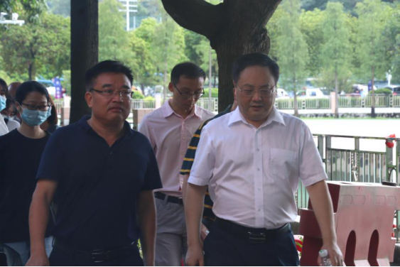 石佑启校长来到第七教学楼关心我院报到新生并与新生及家长亲切交流,同时对我院新生迎新工作表示认可。石校长重点询问了我院绿色通道的具体情况,并参与了迎新活动,在新生签名板上签名纪念。