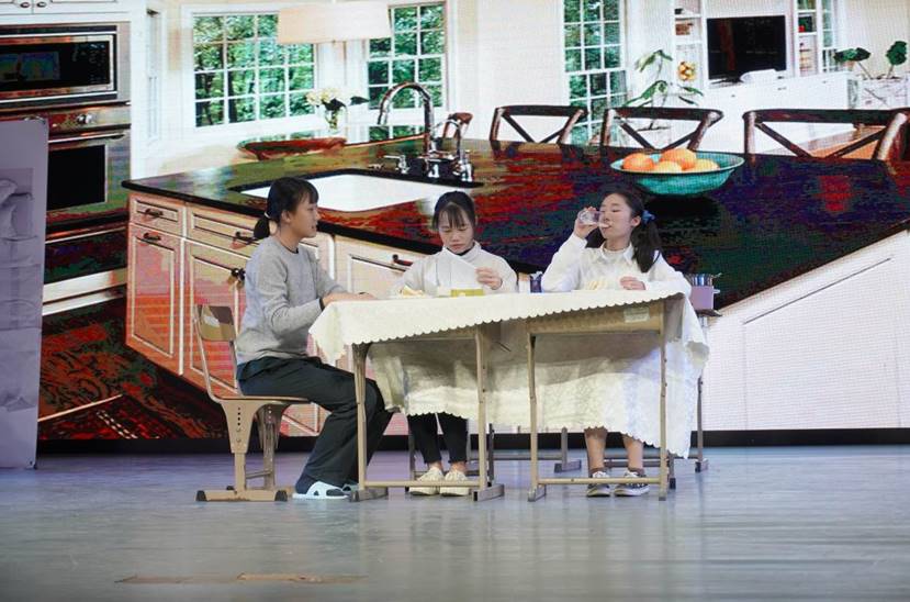 1902班的Tom is Back也讲述了与爱有关的故事。一位老母亲在给死去的儿子过生日时,阴差阳错感动了误入歧途的青年。一句由男孩写给老人的 “If you will, I’m pleased to be the Tom that cares for you and keeps you company.”感动了在场的观众。