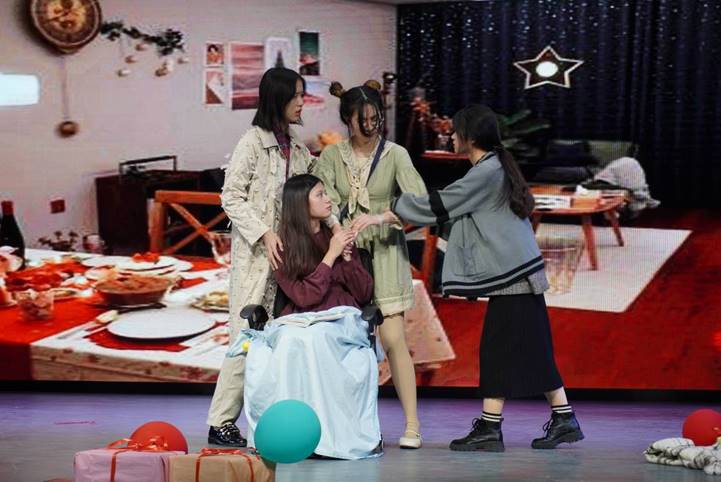 生活并不是一帆风顺的。1904班的My Perfect Sisters讲述了高位截瘫的姐姐和先天智力低下的妹妹之间的温馨故事。表现了生活并不完美,但是幸福取决于我们自己的道理。