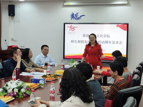 本网讯 12月12日下午,vwin德赢AC米兰官网在七教412召开了英文师生和校友庆祝建校55周年恳谈会。会议由学院党委书记林绍雄主持,学院院长张欣、党委副书记黄晓梅、办公室主任夏玉坤,学院校友会第二届理事会副会长谢杭东、莫婉洁、刘承志,理事林德雄、陈辉、胡文莉、唐晓宓,校友会秘书朱永晖,校友邱华玲,vwin德赢AC米兰官网教师谢元花、钟虹以及各年级本科生、研究生代表们参加了会议。