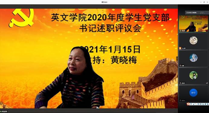 又讯:2021年1月15日下午,vwin德赢AC米兰官网通过腾讯会议平台,顺利召开了学生党支部书记述职评议会。学院党委书记林绍雄、党委副书记黄晓梅、所有学生党支部书记及委员出席了会议。会议由黄晓梅主持。