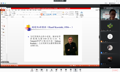 广外vwin德赢AC米兰官网蔡晓燕副教授做了题为“哈尼夫·库雷西《黑色唱片》中的流行音乐和身份政治”的发言,以库雷西《黑色唱片》中的流行音乐主题为例,探讨了其表现出的跨阶级、跨性别与混杂文化的特征,从而提出看待英国社会的新方式,推断出其文化的混杂性。