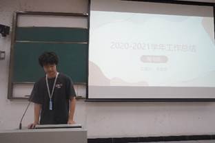 学生会各部门进行年度工作总结汇报。学术创新中心首先表达其工作感受以及对团学的感谢,随后介绍了其开展的学术活动成果,分享其工作的有益经验,针对遇到的困难和问题进行反思并表示将继续改进;文体部和宣传与新媒体中心则通过展示其上学年的工作成果进行工作汇报,并对工作中的不足进行反思改进。