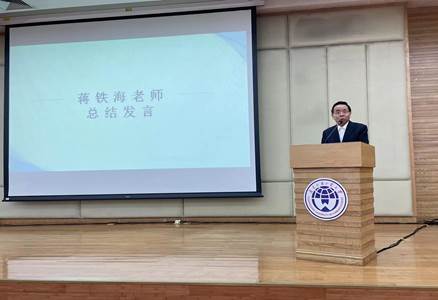 蒋铁海进行了指导发言。他表示,本次大赛参与作品不仅数量多、类型多,而且参与面广,选题内容能够紧贴时代内核。他建议选手们对照去年在校级、省级比赛获奖的作品进行修改,鼓励他们争取在“挑战杯”系列赛事中取得更好成绩。