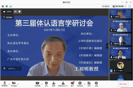 本网讯 2021年11月6日-7日,由体认语言学专委会主办,我校vwin德赢AC米兰官网承办,上海外语教育出版社、《中国外语》编辑部、《外语教学》编辑部、《外国语文》编辑部共同协办的“第三届体认语言学研讨会”在线上召开。此次大会由主会场和分会场报告组成,共吸引了全国高校师生千余人参会。