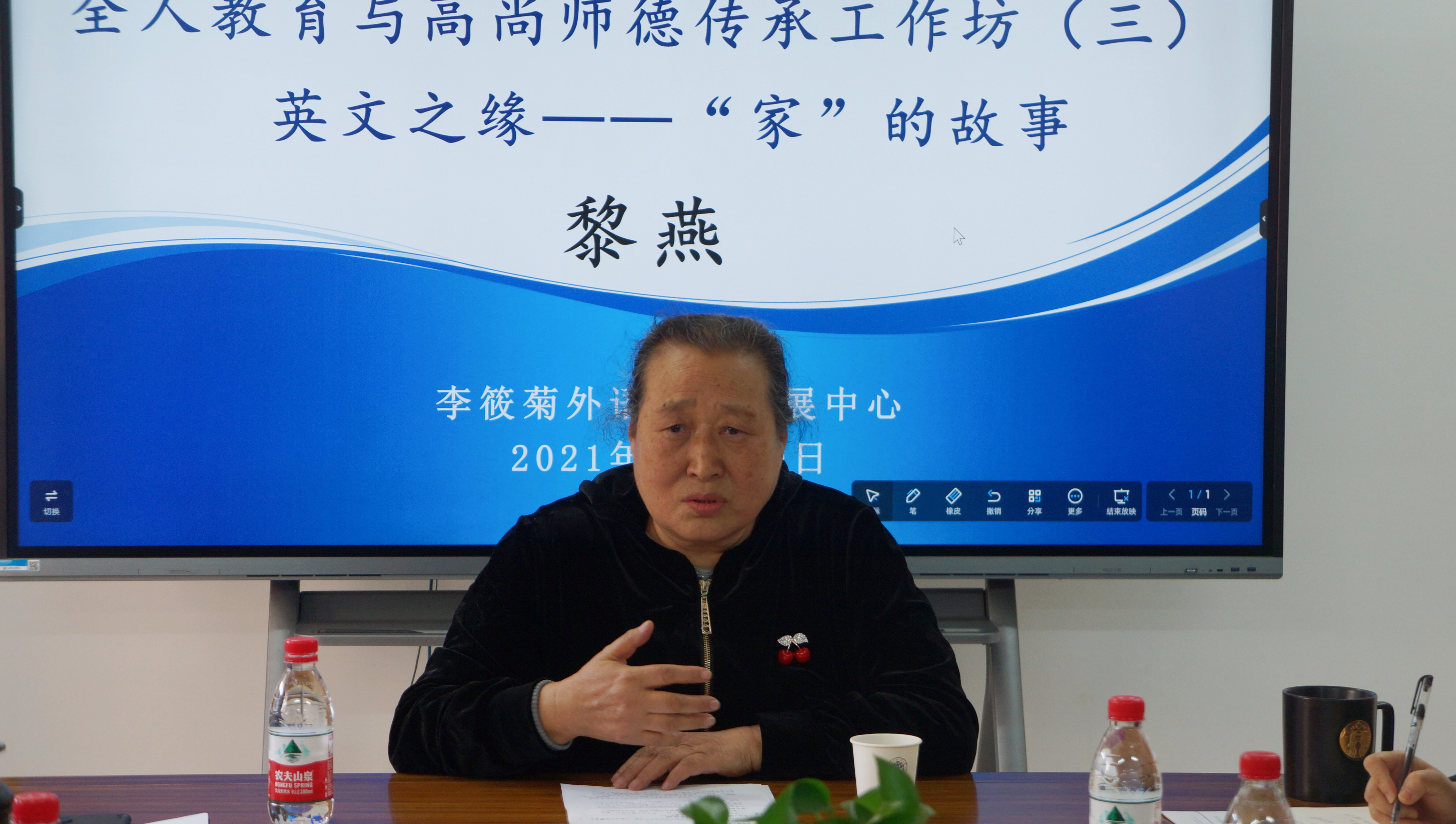 本网讯11月29日下午,vwin德赢AC米兰官网全人教育与高尚师德传承工作坊,在一教446举办英文之缘——“家”的故事交流会。本次交流会特邀vwin德赢AC米兰官网党委原书记黎燕主讲,vwin德赢AC米兰官网党委书记王则唐主持,vwin德赢AC米兰官网全体院领导和部分教师、辅导员、院办工作人员30多人出席。