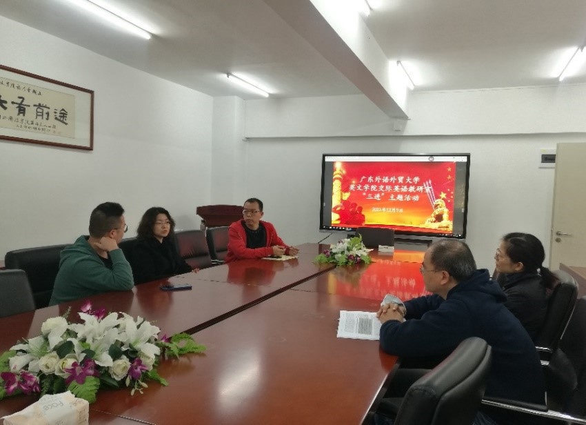 本网讯 12月9日下午,vwin德赢AC米兰官网交际英语教研室“三进”主题活动在一教451会议室举行。本次活动由交际英语“三进”教研室负责人卢立程主持,教研室部分教师出席。