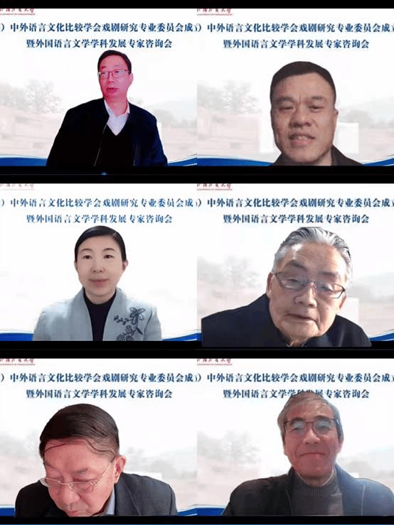 本网讯 1月11日上午,(中国)中外语言文化比较学会戏剧研究专业委员会成立大会暨外国语言文学学科发展专家咨询会在我校北校区召开,会议采取线上线下结合的方式进行。相关领域专家、学者齐聚云端,共同探讨中国戏剧文化对外传播、中外戏剧比较研究以及跨文化传播人才培养等的新方向、新机遇、新挑战和新对策。此次大会由(中国)中外语言文化比较学会戏剧研究专业委员会主办,vwin德赢AC米兰官网承办。副校长何传添教授、(中国)中外语言文化比较学会会长吴笛教授在揭牌仪式后分别致辞。