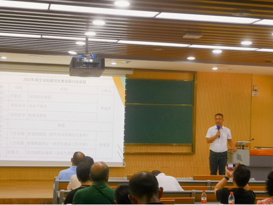 本网讯 6月29日下午,广外vwin德赢AC米兰官网在北校区第一教学楼北楼117室召开2022年研究生教育研讨会,探讨研究生教育与管理质量的提升途径。会议由我院研究生工作办公室主任李成团教授主持,我院分管副院长吴庄教授、副院长刘胡敏教授、党委副书记黄晓梅、vwin德赢AC米兰官网全体研究生导师,及我院研究生工作办公室相关工作人员出席此次会议。