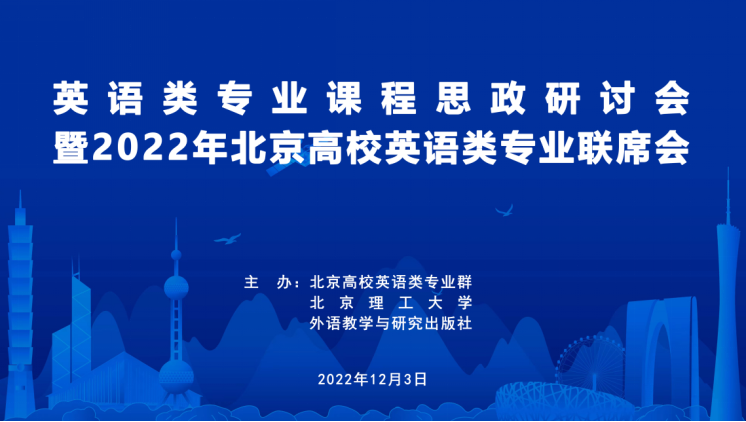 据悉,本次会议由北京高校英语类专业群、北京理工大学和外语教学与研究出版社共同主办。北京高校英语类专业群两委会委员以及来自北京市各高校外国语学院院长、英语专业负责人和骨干教师等近300人参加了线上会议。此次会议对高等学校外语专业教育坚定历史自信、文化自信,坚持古为今用、推陈出新,传承中华优秀传统文化,贯通马克思主义思想精髓,提升外语专业人才培养服务国家国际传播力导向具有重要指导意义。
