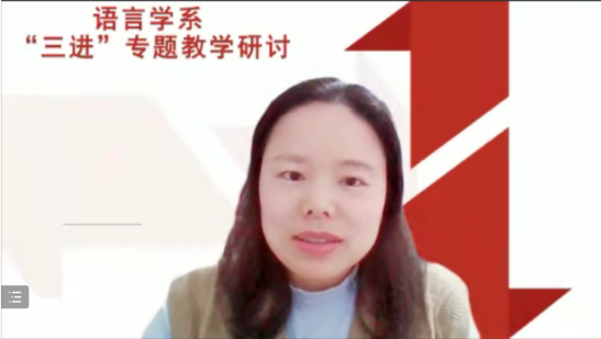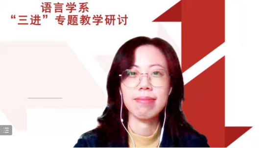 本次“三进”专题教学研讨会讨论热烈,肯定了社会主义核心价值观在语言学专业课程教学中的价值引领作用,强调应将“文化和语言自信”有机融入到专业课程教学研究和人才培养全过程中去,我系将持续开展“三进”教学工作反馈和总结,切实保障“三进”工作走深走实,取得实效。