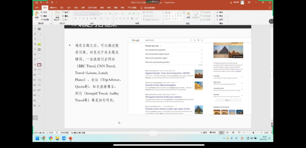 而在目的地分享课程中,符静老师以及李莉老师分别展示了埃及、土耳其、希腊的概况,包括当地的国家概况、民族简史和主要城市及景点等多方面,同时在讲解时,通过与中国文化的对比研究,让同学们对外国的历史和文化等方面的知识有了进一步的了解。