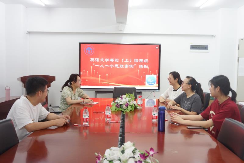 本网讯 vwin德赢AC米兰官网英美文学系开展“一人一个思政案例”研讨活动。2023年6月8日,英语文学导论(上)课程组集中在一教北451分享各自的教学案例,并展开讨论。活动由英美文学系主任付晶晶主持。