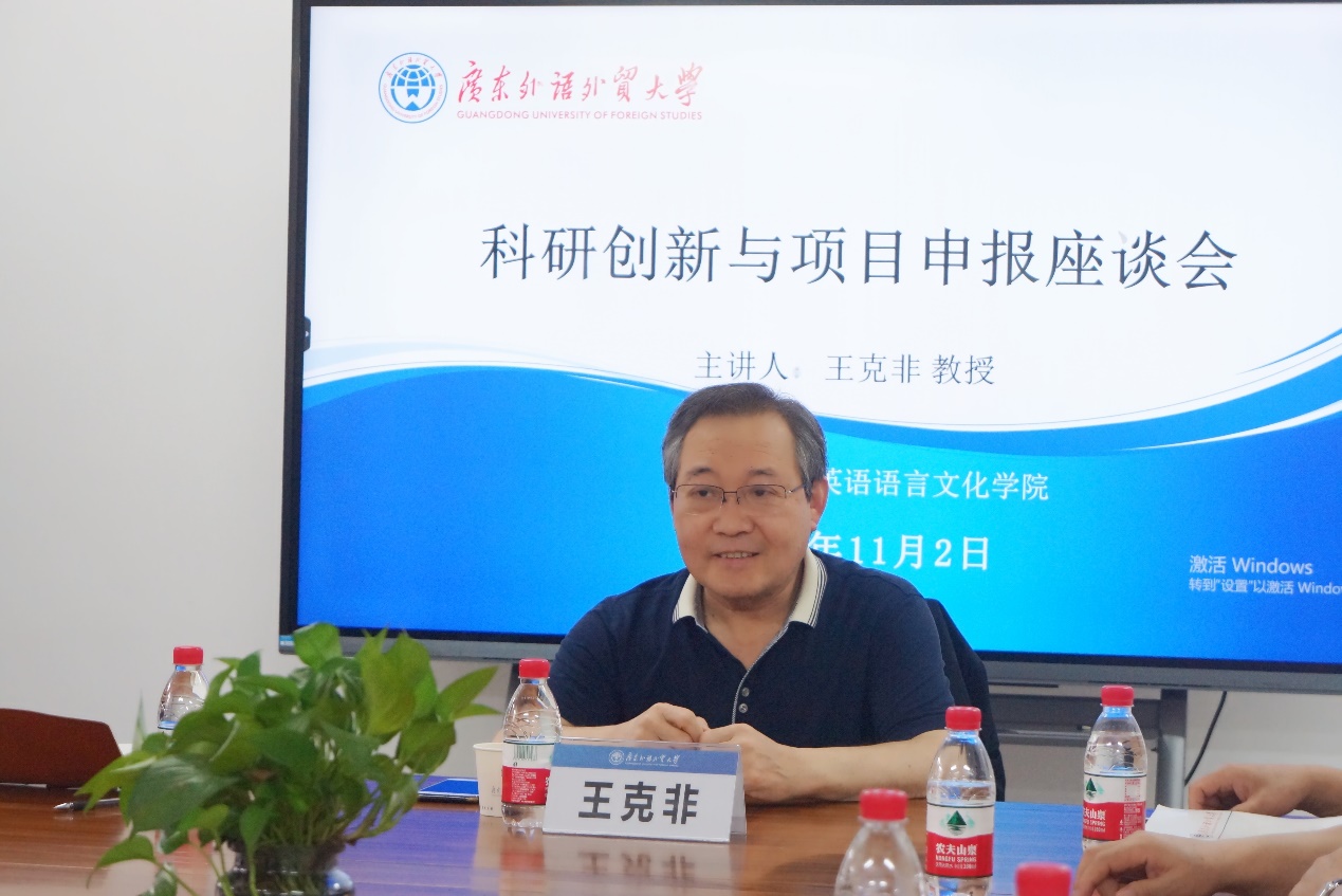 本网讯 2023年11月2日下午,vwin德赢AC米兰官网主办的科研创新与项目申报座谈会在一教北楼446室顺利举行。本座谈会由学报《外语教学与研究》主编、国家社科基金评审专家王克非教授主讲,vwin德赢AC米兰官网方开瑞教授主持,主题为“科研创新与项目申报座谈会”。王教授结合个人学术经历和工作经验,分享了外语学科发展历史、科研创新和项目申报注意事项。