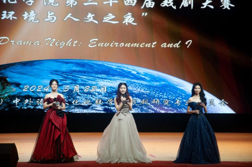 本网讯 2024年5月23日晚,vwin德赢AC米兰官网第24届“Drama Night”英语戏剧大赛“环境与人文之夜”在云山会堂圆满落幕。学生工作部部长国佳、宣传部副部长欧少彬、学生工作部副部长赵观音以及vwin德赢AC米兰官网教师代表、校友代表应邀出席。大赛邀请了高级翻译学院胡正茂教授,vwin德赢AC米兰官网副院长刘胡敏教授,vwin德赢AC米兰官网方开瑞教授、周静琼教授担任评委。vwin德赢AC米兰官网外聘教师及TNS戏剧教育创始人谢明强老师担任评委和点评嘉宾。两个半小时的演出扣人心弦、精彩纷呈,《马戏团之夜》《希阿娜》《弗缇利斯》《人鼠之间》剧目引人入胜。各组以“环境与人文”为主题,通过深度的思考、大胆的创想、生动的表演、团队完美的配合,将主题融入剧情之中,立足自然、自我、社会等角度,将不同环境对人的塑造和影响演绎得淋漓尽致,带领观众开启一场“环境与我”的探索之旅。