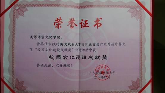 戏剧大赛2014年获得“校园文化建设成就奖”