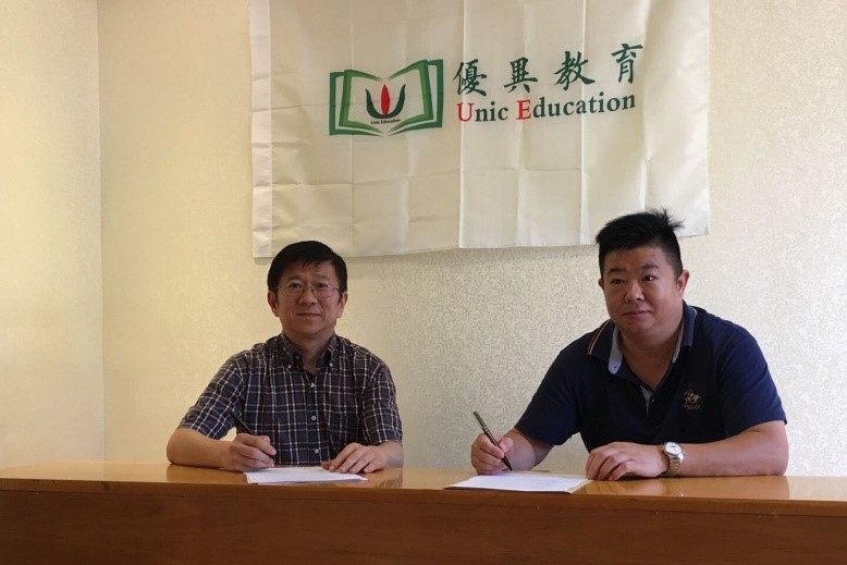 本网讯 7月22日,广东外语外贸大学vwin德赢AC米兰官网与珠海优异教育有限公司共建实践教学基地挂牌仪式在珠海顺利举行。学院党委王斌书记,英语教学部主任王蕴峰博士、翻译系胡正茂博士,优异教育张廷忠总经理,胡碧辉执行校长等出席了仪式。