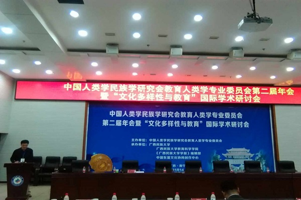 本网讯  20151113-15日在广西壮族自治区南宁市广西民族大学教育科学学院召开了中国人类学民族学研究会教育人类学专业委员会第二届年会,暨文化多样性与教育学术研讨会。来自全国各地的专家学者两百多个参加了会议。我院欧阳护华教授被大会增补为常委理事,主持了第一分会场的15场发言并做了题为用你的叙事温柔地征服:探索民族文化之间的沟通新途径的发言。并在大会闭幕式上做了20分钟的总结发言。