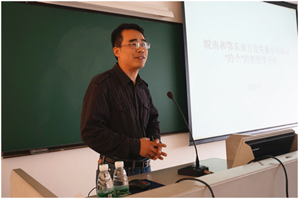 本网讯 10月30号下午3:30,以“皖南和鄂东南方言关系小句标记‘的个’的类型学分析”为主题的语言学讲座在七教523室举行。该讲座由我院的龙海平教授主讲,王文心老师主持。参加讲座的还有我院院长温宾利,副院长余盛明以及部分师生。