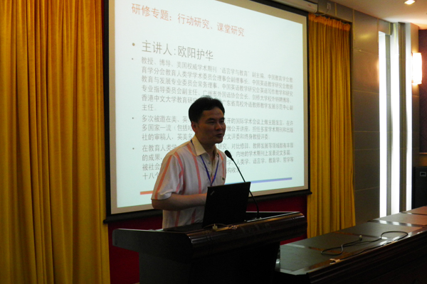 研讨会开始,欧阳护华首先提出教师科研与日常教学的冲突问题,即科研工作会给已处在教学重压下的教师更多的困扰。对此,欧阳护华认为,解决问题的方法应是减轻日常教学的负担。紧接着,欧阳护华从研究条件、研究动机、评估标准、研究者资格等四个方面,把教师与专业研究者作了对比。在这基础上他提出,老师们可以通过行动研究、叙事研究等教师发展的方法来帮助自己。